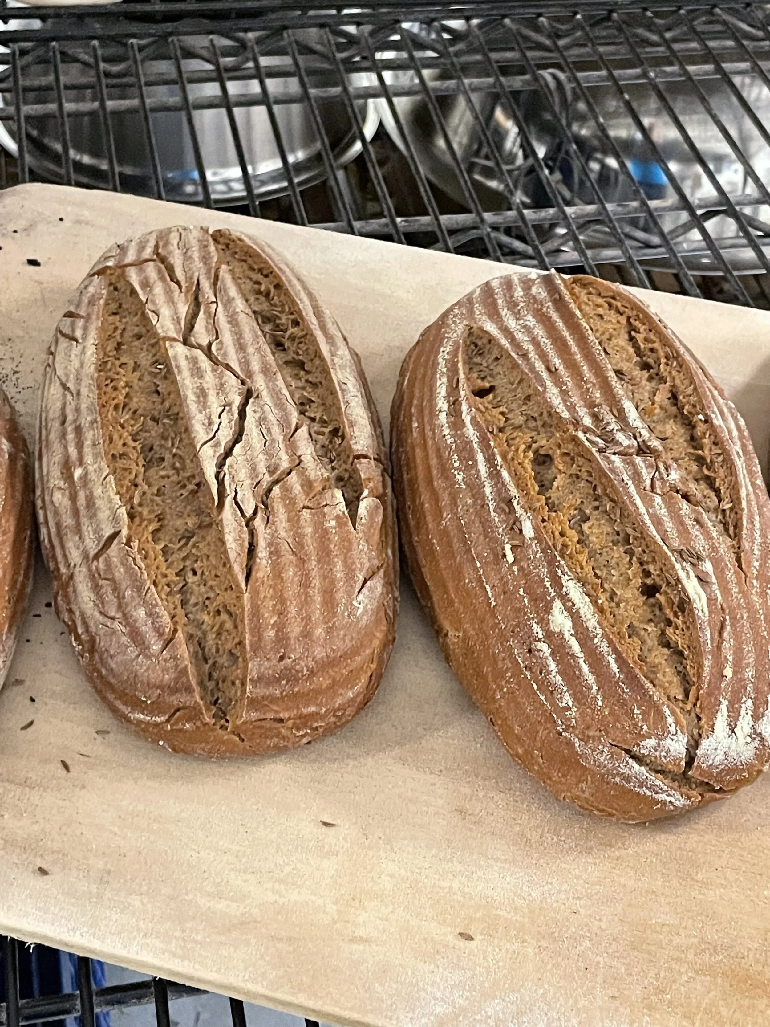 INGREDIENTS: hi gluten & rye flours, water, yeast, latshaw apiaries honey, caraway seeds, salt .
